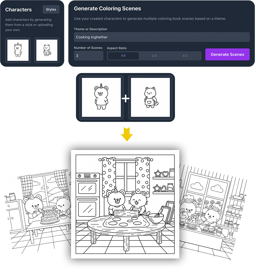 - Scene Generation: Create captivating scenes for your coloring pages.